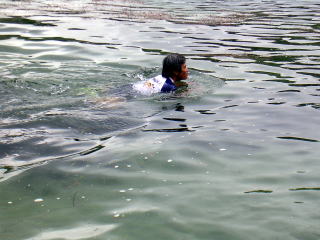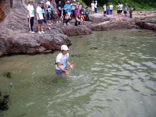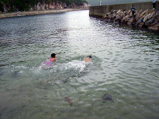 マラニック!!山西先生がいきなり、ザブン〜東京から参加の鈴木さん、西村かおるさん、隠岐の正和、原くん、力さんも続きました