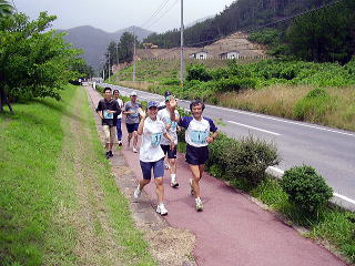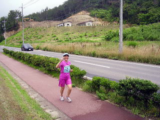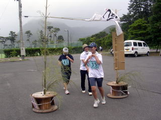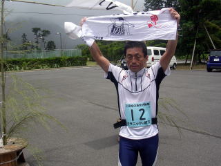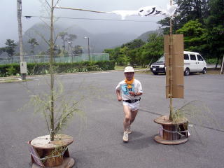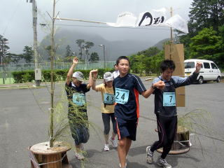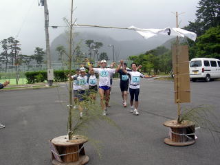 都万のシンボル・高田山を背にゴールです〜遊び感覚なので、苦痛の顔は一つもありません〜