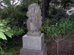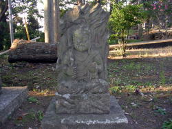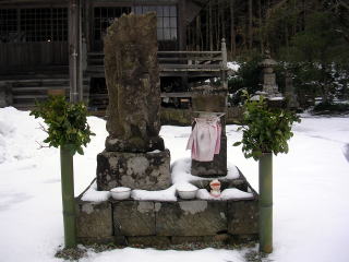 | 願満寺前、後ろは小野たかむらが 彫ったとされる |