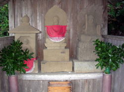 | こちらも地蔵院です。真言宗や天台宗の寺にあるのなら分かるが・・でも階段登って背を向けていた・・ | 地蔵院・・こんな感じで三体並んでいました・・ |