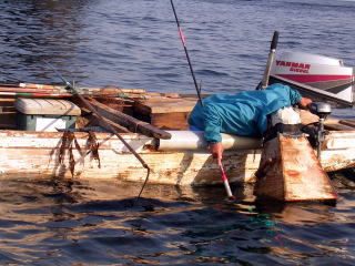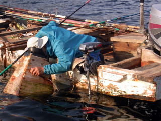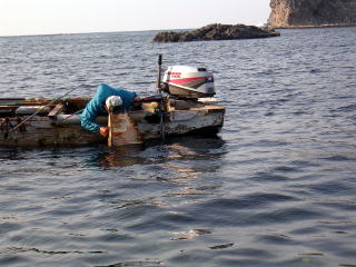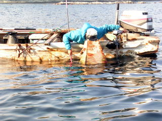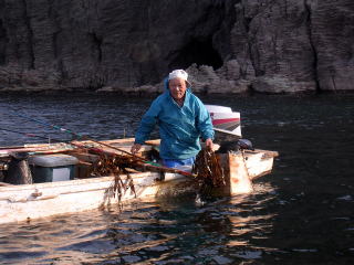 ![]() 隠岐最北の海でアラメを採っている大西おじさん |