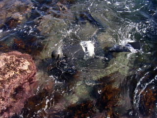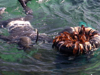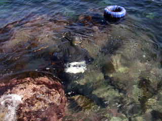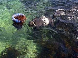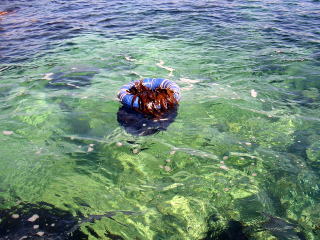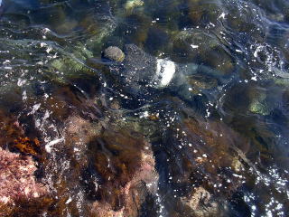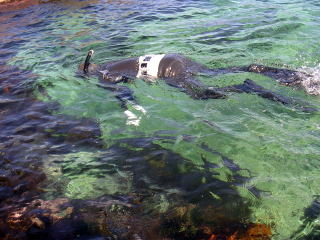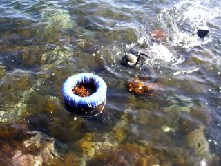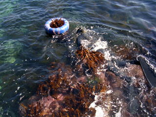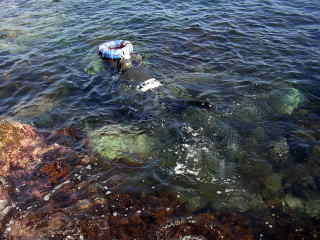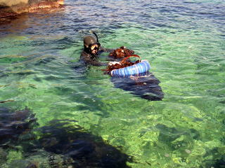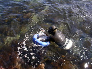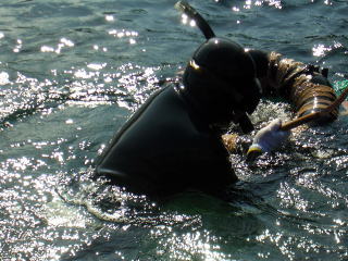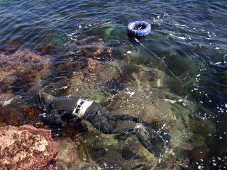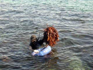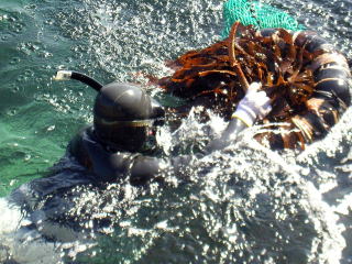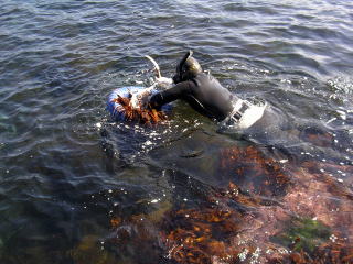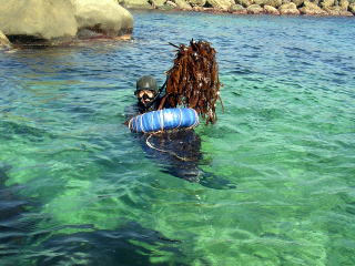 ![]() 鎌を手に持ち潜ってアラメを刈ります |