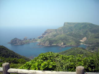![]() きつい坂を登ったら絶景が!さっきいた国賀海岸を一望 |