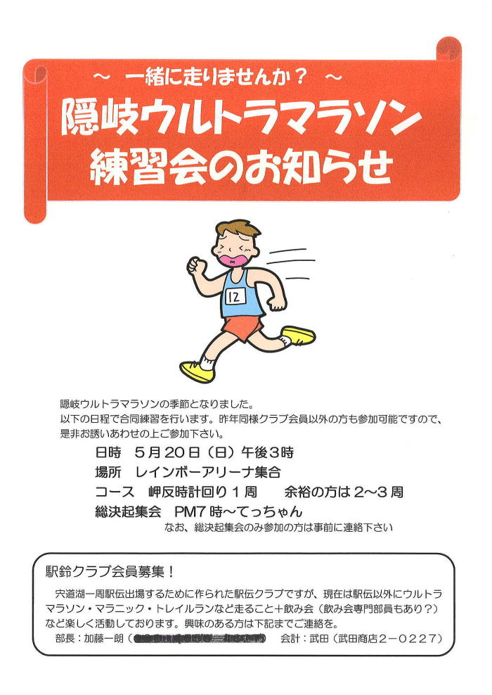 隠岐ウルトラマラソン練習会&決起集会のお知らせ〜