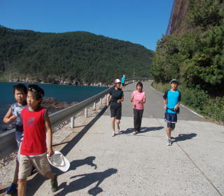 楽しくなごやかな雰囲気でした!!距離は10kmぐらいで、大きなアップダウンもなく子供達と