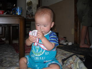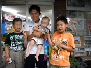 ![]() 優志(8ヶ月)をだっこしてもらい・三兄弟と!! |