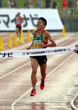 今年2月の東京マラソンで、2時間8分37秒という素晴らしい記録で3位、日本人1位となり世界陸上のマラソン日本代表