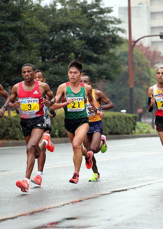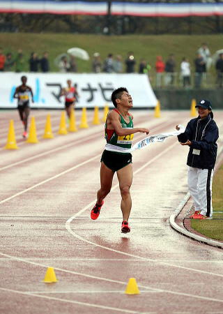 35km過ぎてから、追いついてきた集団(堀尾、赤崎、大迫、小山、井上、其田)にあっさりとは追いつかれず、5mから