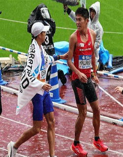 感動的なゴールシーンでした。後でネットの画像で知りました。大迫さんが川内さんに「おつかれさまでした?」の写真も