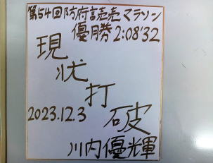 2023.12.23、川内優輝さんから防府読売マラソンの優勝