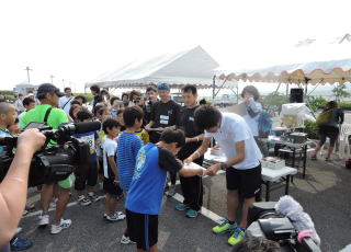 ![]() 予定していなかったが、子供達が整列してのサイン会 |