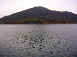 ![]() 対岸から金峯山を望む・昔はここ宇屋村から舟に乗って渡っていた。約8町(800m) |