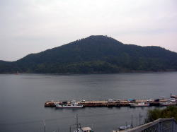 (右側の門番には愛宕山が・)金峯山の高さは198mです。隠岐では・きんぶさんと呼ばれています。