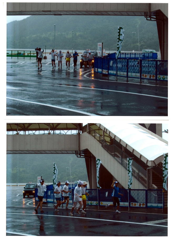 小雨の中、隠岐フェリー岸壁をスタート・9人の男達の冒険が始った!!