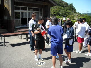 ![]() 中学女子団体優勝・西郷中にカップを渡す駅鈴クラブ ハイユウさんです〜 |