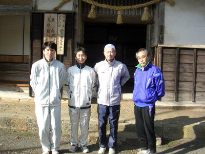 | 1月29日・初日・・隠岐高〜岬一周18k走・・ 正和、池田さん、司くん、周平くん、たけさん 練習前に玉若酢命神社に残っている駅鈴について億岐家第47代当主の正彦氏よりお話していただきました。 改めて駅鈴の歴史を知り駅伝に向けて力が湧いて来ました。又億岐氏からも練習頑張って下さいとのお言葉を!! 司君は駅鈴と幸運の女神の像を! たけさんも初めてマイ駅鈴を購入しました! 司くんには幸運が待ち受けているかも?? 初練習はまぁとことこ行こうとの話でしたが、正和が裏切りで?・・スーイスーイと・・練習不足との話でしたが、なかなかどうして! (正和、今日から五箇での早朝寒稽古でも40人のリーダーとして村民を引っ張っています!!) 周平くんも動き良く、頑張っていましたー 池田さんも故障が心配の中マイペースで頑張りましたー 特筆すべきは司くん。後半も落ちずに走りぬきました!! 女神の力か!! 終了後は皆でラーメンを食べましたー美味しかった! 又来週です。 |