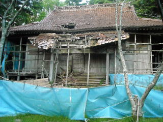 エード地の大満寺は、自然の水が蛇口から出ていました。本堂の屋根は風水害で崩れかけていて、