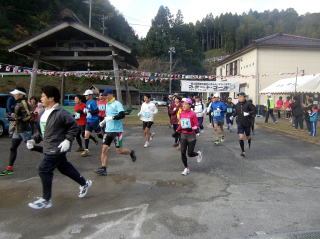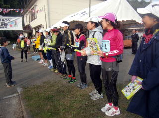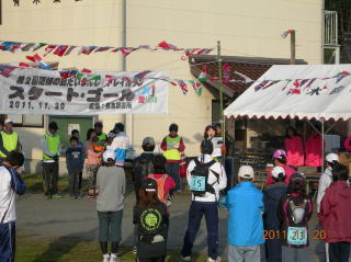 ![]() いよいよ出発ー有木小6年、スターター村上くんの合図で〜 |