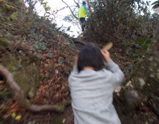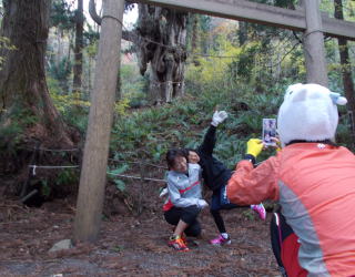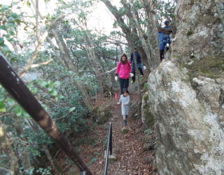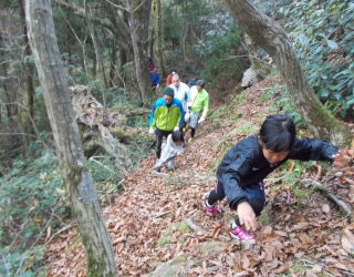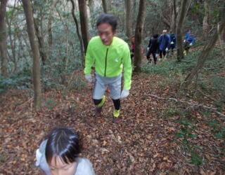 C前日〜準備&浜梶さんとミニトレイル〜 前日朝、有木の皆さんや駅鈴のメンバーが手際よく、会場設営を行いました。 私がだいまんじ寺から帰ってきたらほぼ完了していました。お昼の船や大阪便で 来た参加者と前日のプチトレイル・浜梶さんのワンポイントレッスン〜コースの一部を 楽しく行きました。ここで小さなお子さんの適正も確認しました〜すごい!!