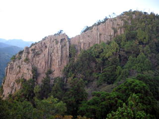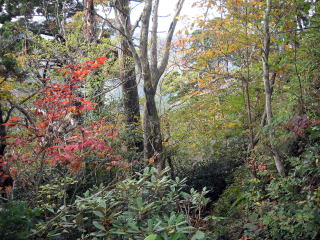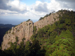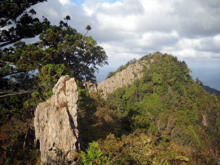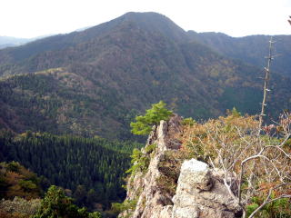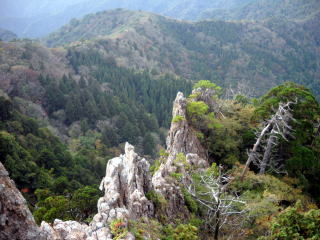 ![]() びょうぶ岩の後ろ側の神聖な石を見てその下の谷に |