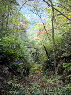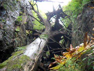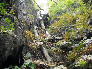 また無謀にもそこから谷を降り、びょうぶ岩の下を一周する形になりました。遥か昔に山伏が修行したであろう