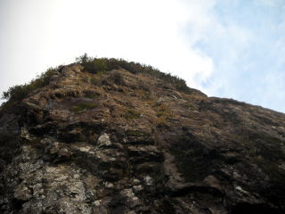 岩をはいつくばり、しゃくなげがかなり群生していて、かきわけ、がけを登りすすみました。