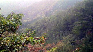 ![]() 天然林手前からの、びょうぶ岩 |