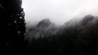 ![]() 寺前も霧がかかっていた |