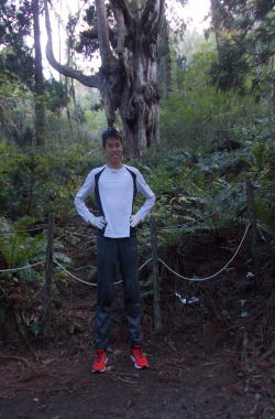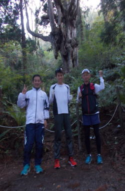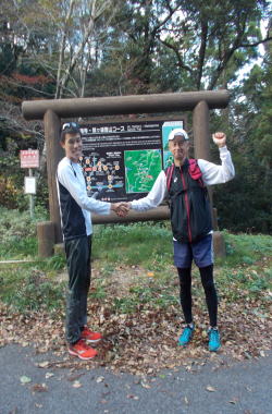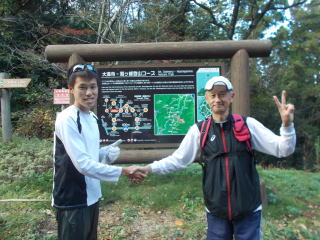 来島されました。お疲れの中、着いてすぐに、だいまんじトレイルランのコースの一部を体感されました。駅鈴クラブの池本周平さんと