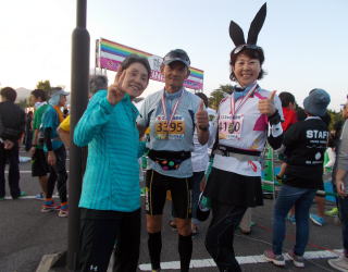 ![]() 100kmスタート前・山崎さん鷲見さんと |