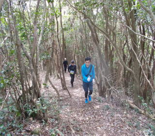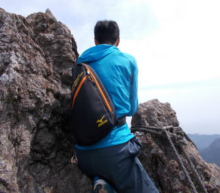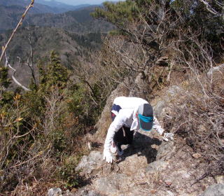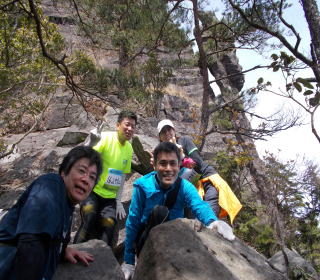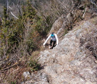 ![]() 鷲ヶ峰の岩を登る大西さん |