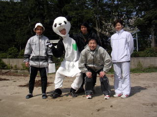 ![]() 春日の浜で出発式の練習・きぐるみは誰? |