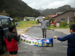 子供達も慣れないながらも、時折ケンカしながら、ゴールテープで迎えてくれました。