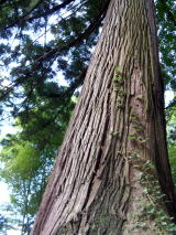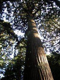 一見して人工的とも思われる杉などの巨木樹林が現存している。現在天然林と云われている地域である。