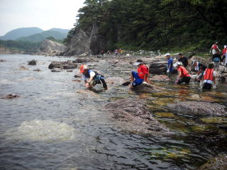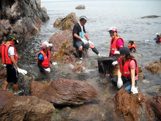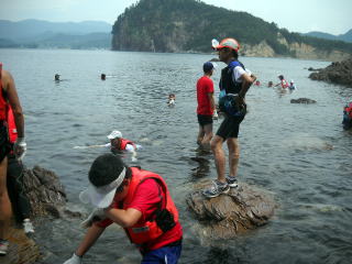 ![]() 大分泳いで、岩場に |