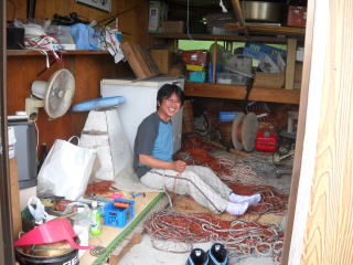 ![]() 津戸そして隠岐のキーマン野辺さんが網作業をしてました マラニック前夜祭では、またごっつぉを用意していただけます |