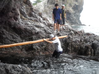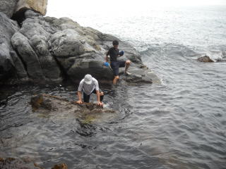 海・岩場は用心して行かないといけない所もあります。子供一人につき大人が目を離さずに、しっかりガードする形で行きます。