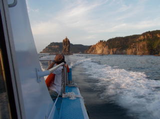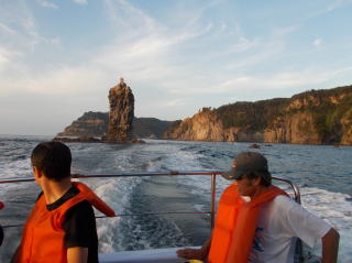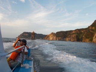 ウェルカム 隠岐の島!! 25年7月20日(土) 都万マラニック前日〜山西先生、西村さん、河村さんとで、八百杉・玉若酢字神社、駅鈴〜 大和地、ローソク岩遊覧船に行きました。遊覧船のガイドさんもよく、楽しみました!!