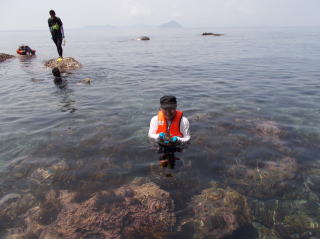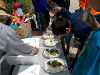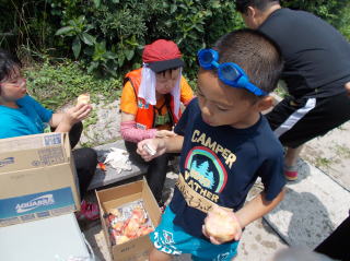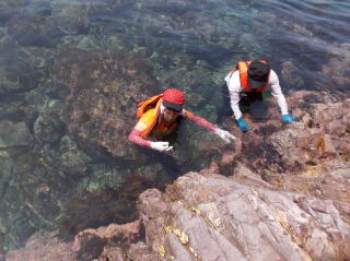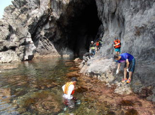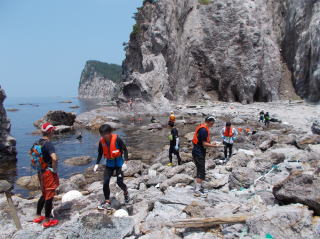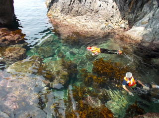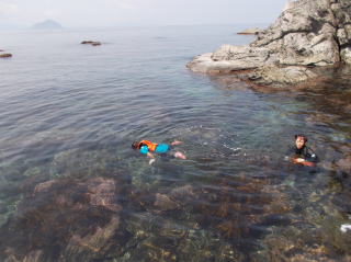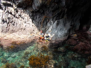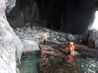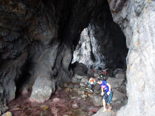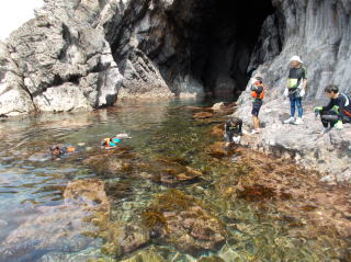 第6回都万マラニック 2日日!!no3 26年7月20日(日) とても大きな神秘的な洞窟・さがさんが、ここでレコーディングしたい!と・ そして即席のコンサート〜 海の透明度も抜群だった!ウミウシ初めて触ったゆきさん、水の中で ムラサキに光る海藻を発見・感動の連続でした〜 海からあがってのエードでは、とっても美味しかった、長谷川さんの サンドイッチと、池本さんの周平桃をいただきました!!